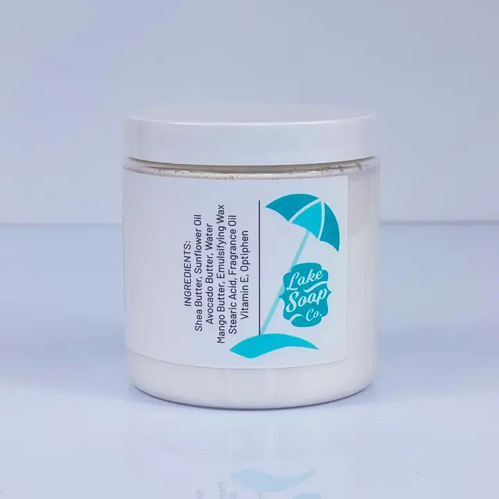 Ingredients: Avocado Butter, Shea Butter, Mango Butter, Sunflower Oil, Stearic Acid, Emulsifying Wax, Essential Oil or Fragrance Oil, Vitamin E, Optiphen