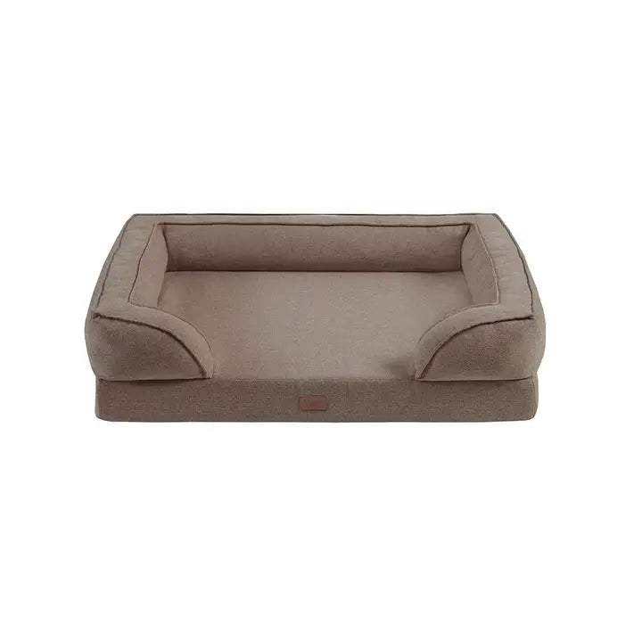 Bolstered 2-Layer Dog Bed with Gel Memory Foam, Brown
