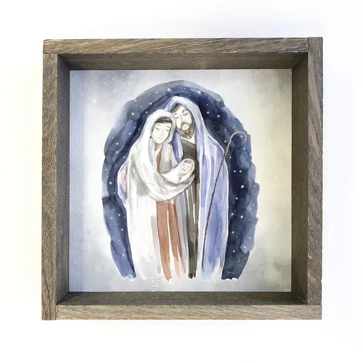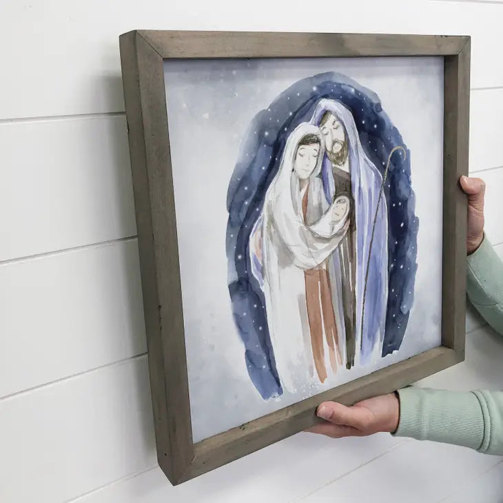 This nativity painting is printed on canvas with a wood frame. This rustic farmhouse sign is cute and meaningful this Christmas season.
