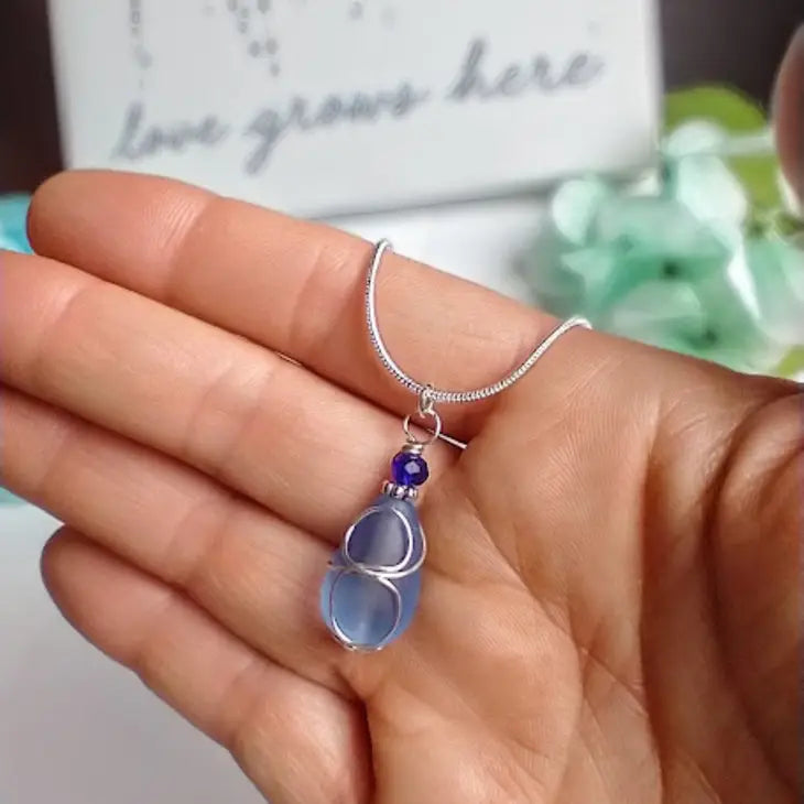 ***Cobalt Blue Sea Glass "Loop" Silver Snake Chain Necklace-18"*** A gorgeous unique wire wrapped design, sure to compliment any outfit! 10mm x 15mm Smooth Teardrop-Shaped cultured Sea Glass Bead wrapped in silver wire. Strung on an 18 inch silver plated snake chain necklace. Lead & Nickel Free. Packaged in a lovely Organza gift bag. ---------------------------------- ***Cobalt Blue Sea Glass "Loop" Silver Dangle Earrings*** Measures 1.5 inch in total length. 10mm x 15mm Smooth Teardrop-Shaped cultured Sea Glass Bead wrapped in silver wire. Silver Plated French Hook style ear wires. (Lead & Nickel free) ------------------------------------ ***Cobalt Blue Sea Glass Pebble Silver Chain Link Bracelet*** Measures 8 inches in length with a 1 inch extension chain.