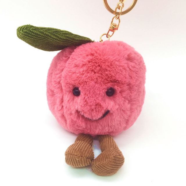 Cute plush fruit keychain pendants. Measure approximately 15 cm/ 6 inches in height. These are so cute and fun to hook to a purse or backpack! The keychain can be removed so the little plush can be played without it.