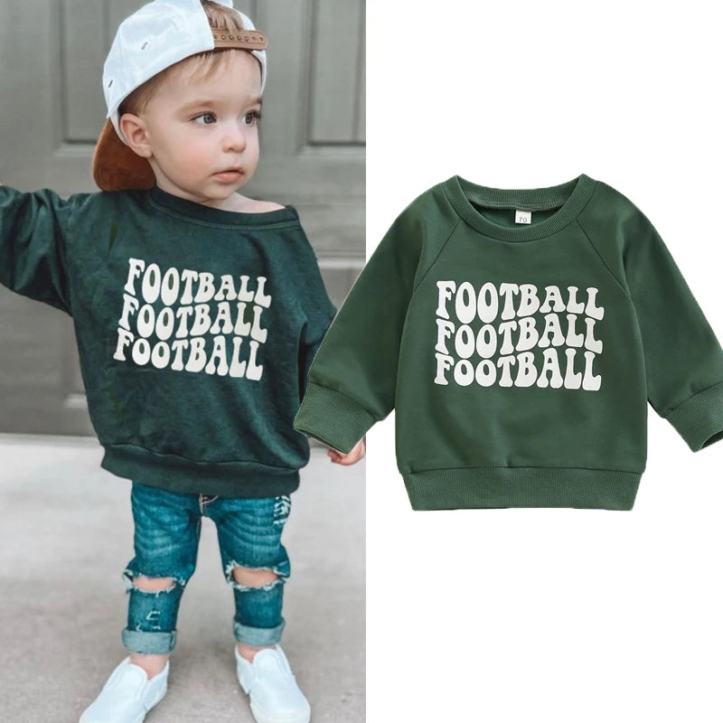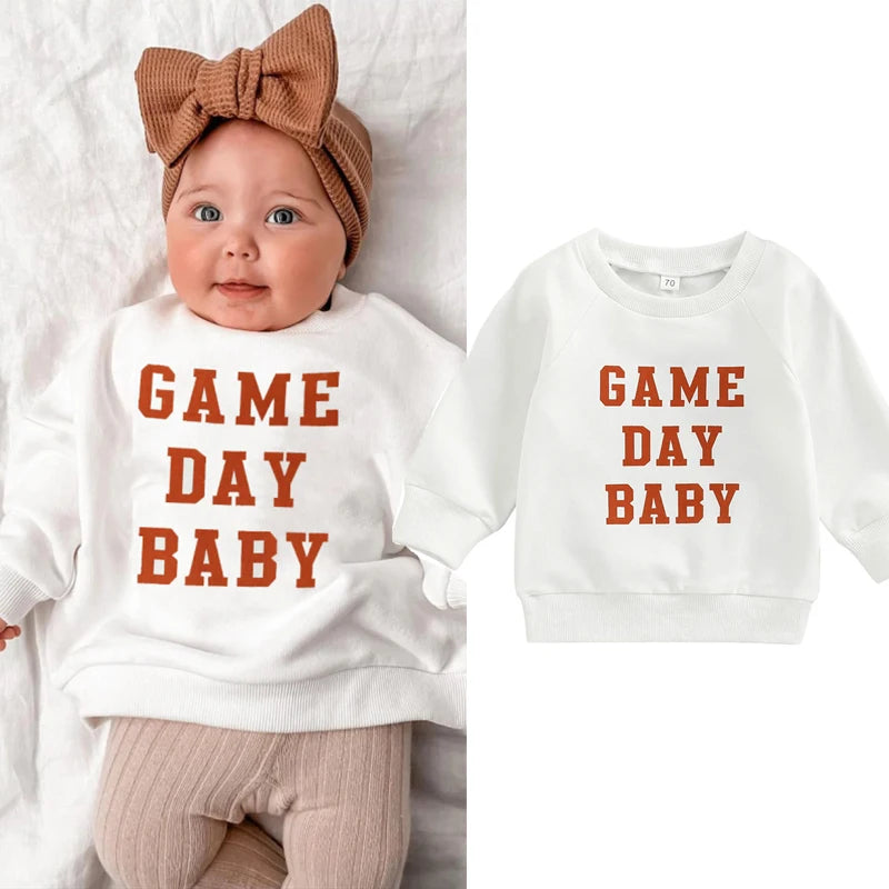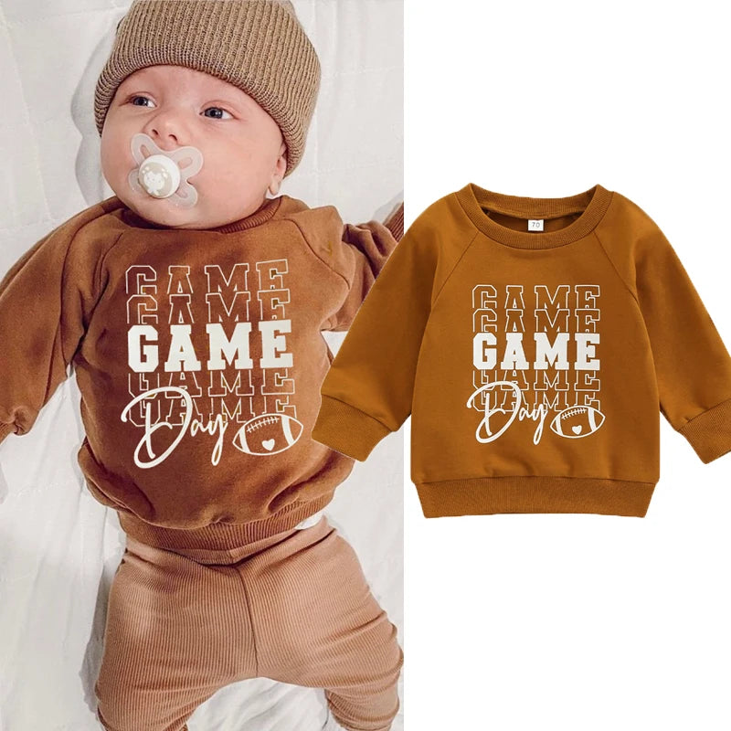 Infant Casual Pullovers, Long Sleeve Round Neck Letter Print Ribbed Cuffs Sweatshirts