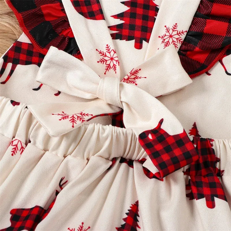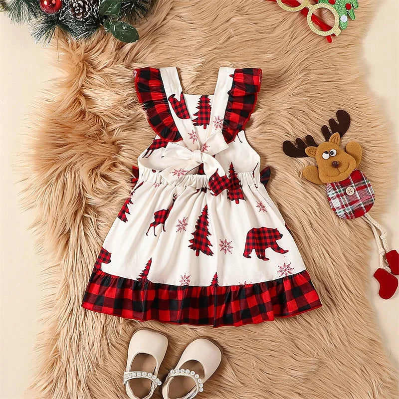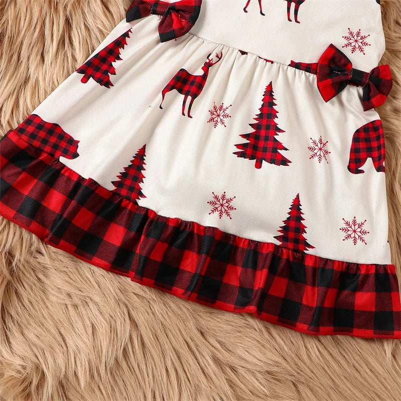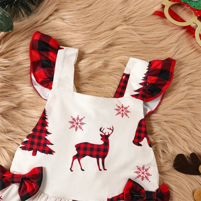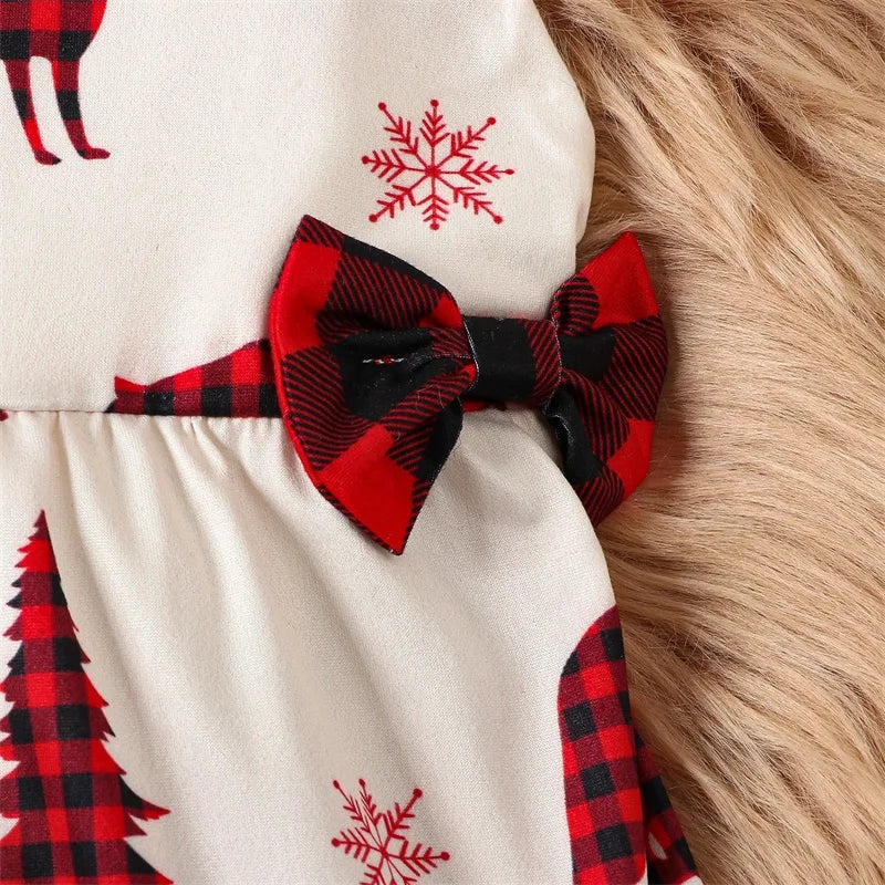 Infant Baby Girls Christmas Dress -Tree and Reindeer Plaid Print