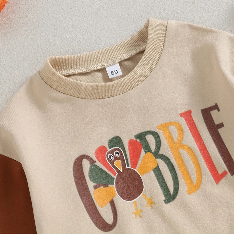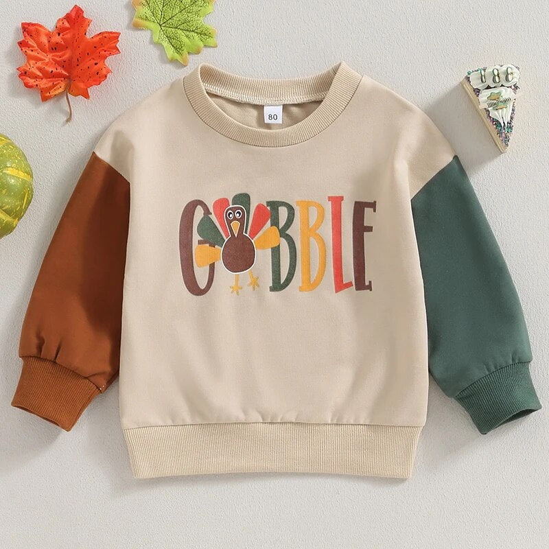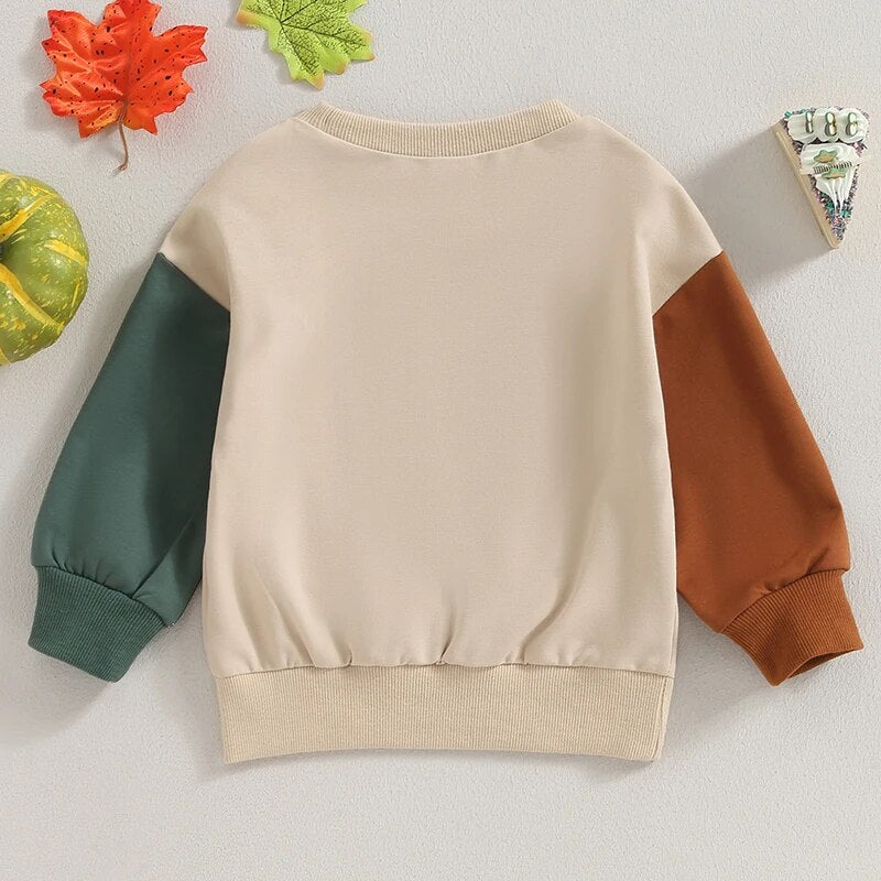 These cute color block style sweatshirts are perfect for the Thanksgiving season. Comes in 2 different styles.