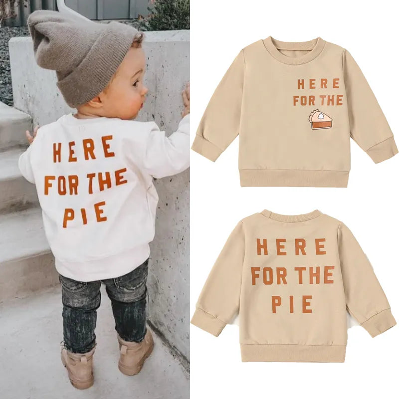 Celebrate Thanksgiving with our "Here for the Pie" kids shirt, available in sizes 12m-4T! Perfect for adding a touch of holiday spirit to your little one's wardrobe. Get ready for delicious pies and quality family time in style!