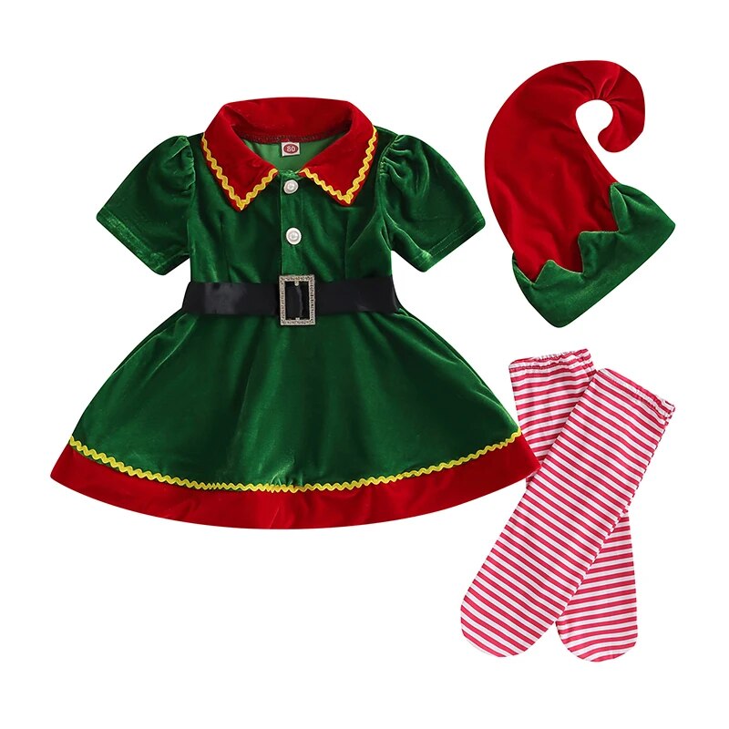 Get your little one ready for the holiday season with our Christmas Elf Dress! This 4 piece set includes an adorable elf dress, perfect for holiday parties and photos. Your toddler will look like a festive little elf while staying comfortable and stylish. Get yours today for a magical holiday experience!