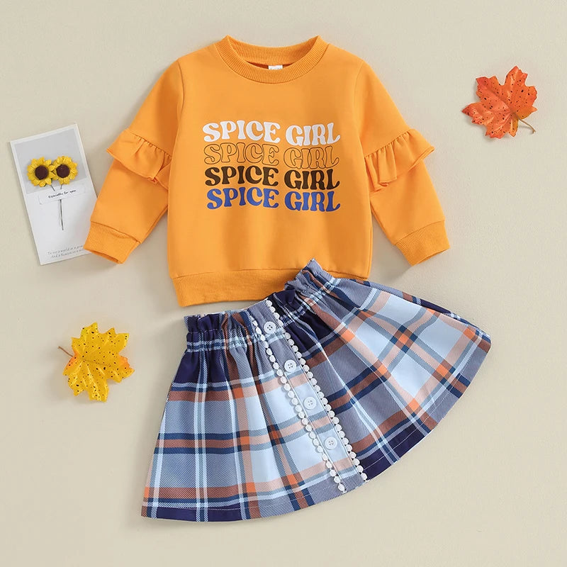 Unleash your little girl's inner spice with this 2-piece outfit! Consisting of an A-line skirt and a matching top, this outfit offers comfort and style for any occasion. Perfect for the fashion-forward girl who loves to stand out and make a statement. Let her spice up her wardrobe with this must-have outfit!