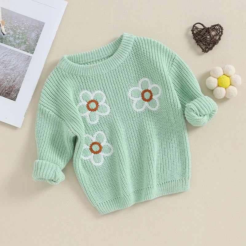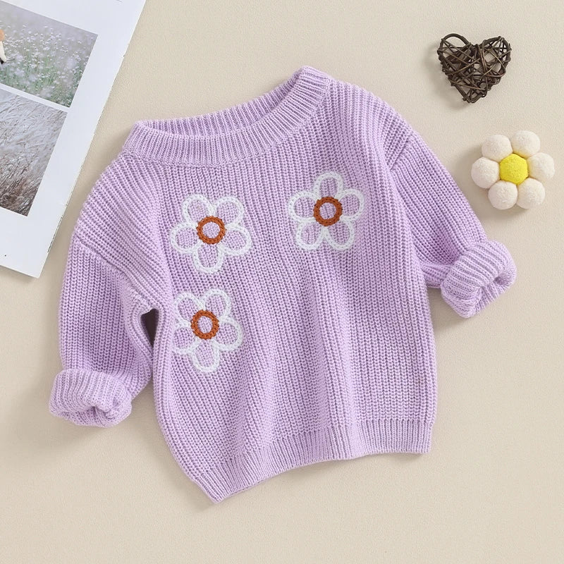 Wrap your little one in style with our Baby/Toddler Girl Knit Floral Sweater. Made of cozy knit material, this pullover sweater features a playful floral design. Keep your baby or toddler warm and fashionable with this unique piece. Perfect for any occasion!