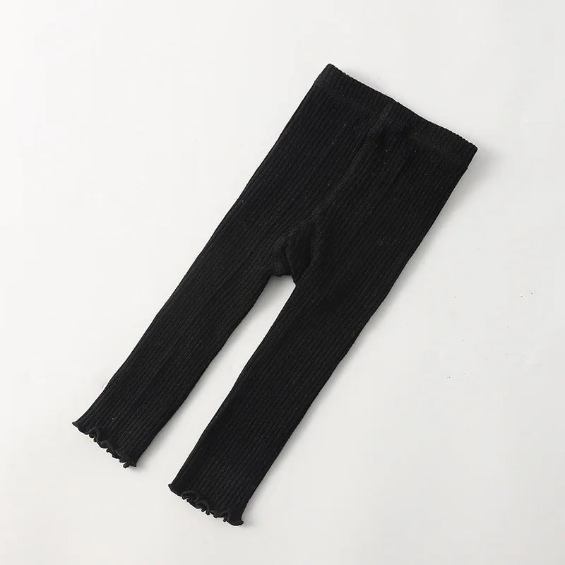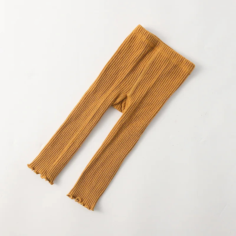 Dress your little girl in style and comfort with our Ribbed Leggings for Baby and Toddler Girls. These adorable leggings feature a cute ruffle cuff design, adding a touch of charm to any outfit. Made with high-quality ribbed fabric, they are soft and comfortable for your little one to wear all day long. Get ready for the cutest fashion statement!