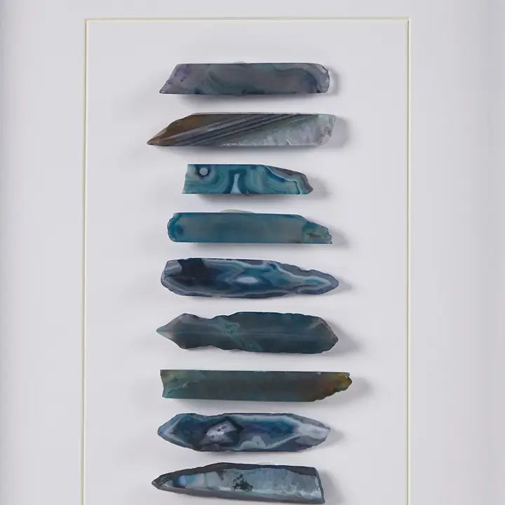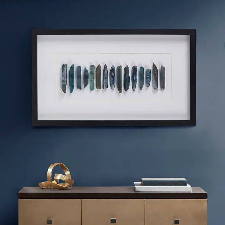 Genuine Agate Stones Wall Art Shadow Box Decor, Blue