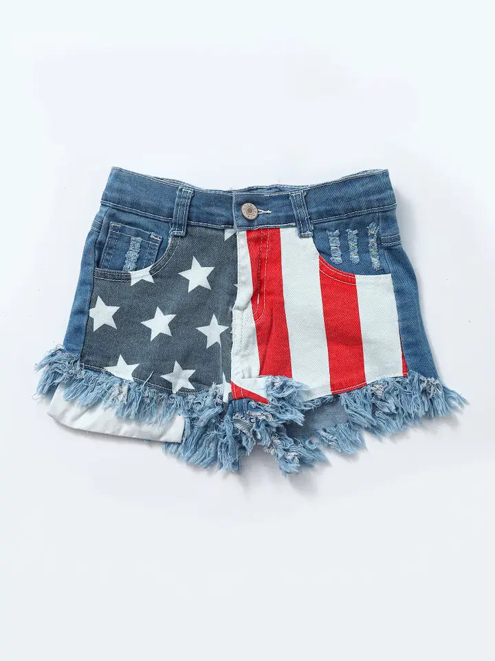 Girls Stars Stripe Patriotic Denim Shorts