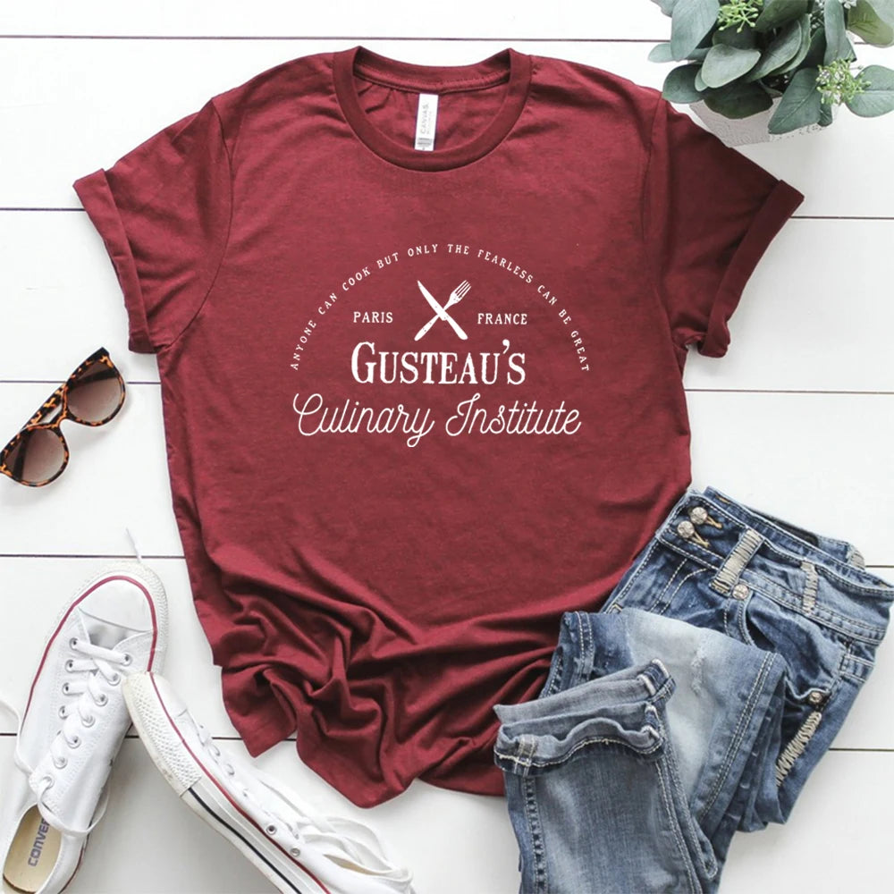 Join the elite group of culinary masters with the Gusteau's Culinary Institute - Ratatouille Women's T-Shirt! Show off your love for cooking with this sleek and stylish tee featuring the iconic Gusteau logo. Become part of the culinary world and inspire others to follow their passion for food.
