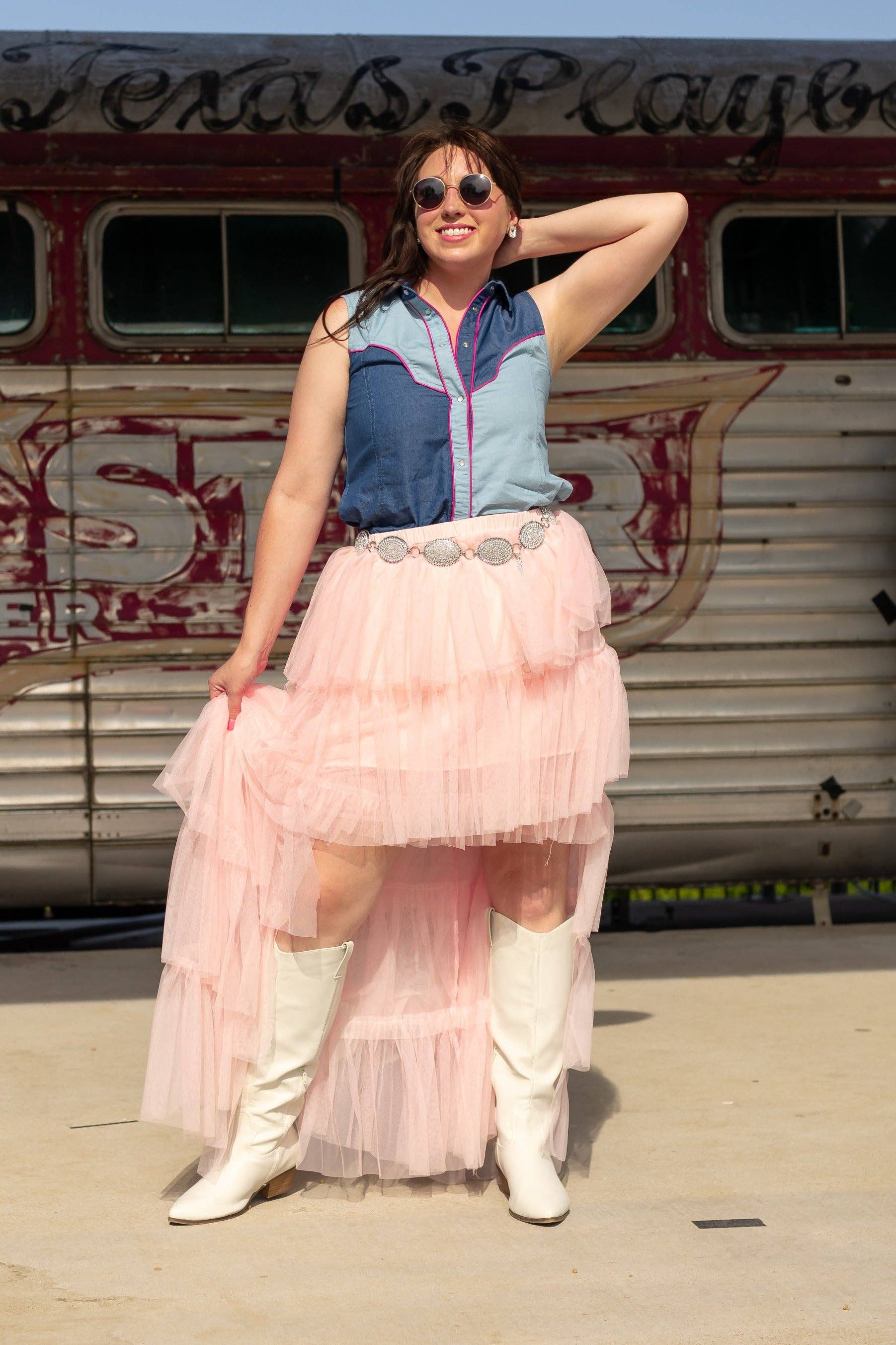 This Western-inspired piece seamlessly blends sweet southern charm with a touch of sophistication. The classic pearl snaps and sleeveless design makes this the perfect top to keep you cool in the summer months. Embrace the cool cowgirl vibes this Summer with your new favorite top. Material: 100% Cotton Fit: Relaxed Our model is wearing a size small