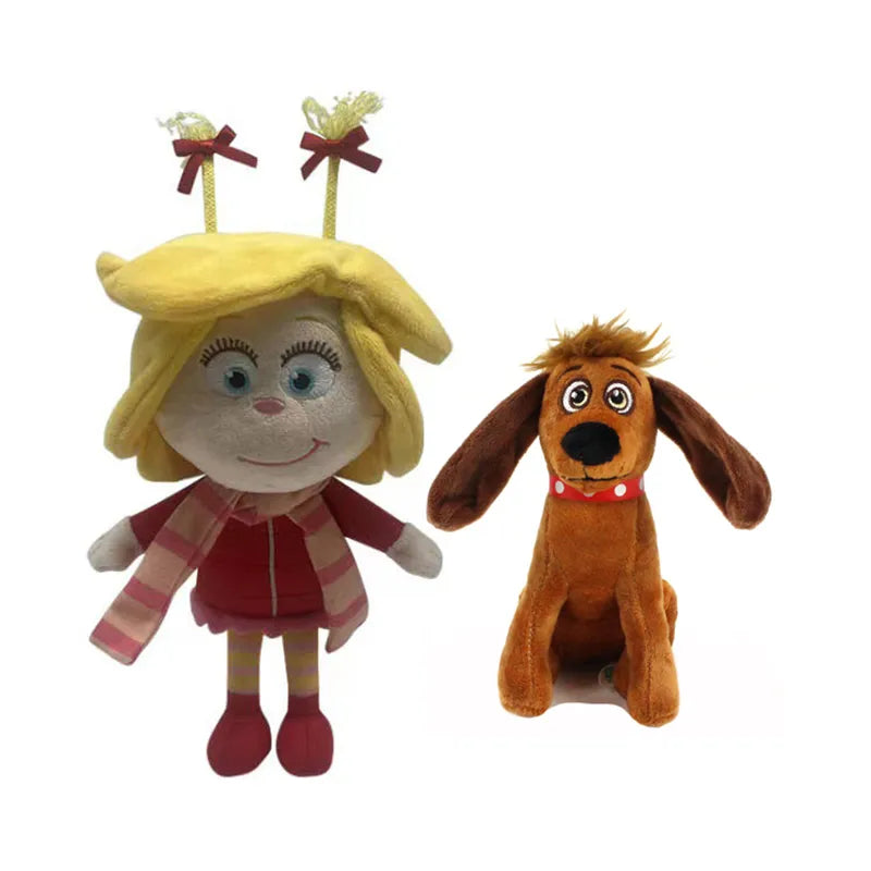 Bring the beloved characters from "The Grinch that Stole Christmas" to life with this Cindy Lou Who and Max plush toy set! Made with soft and huggable material, these toys are perfect for cuddling and playtime. Join them on their holiday adventures and spread the Christmas spirit to all!