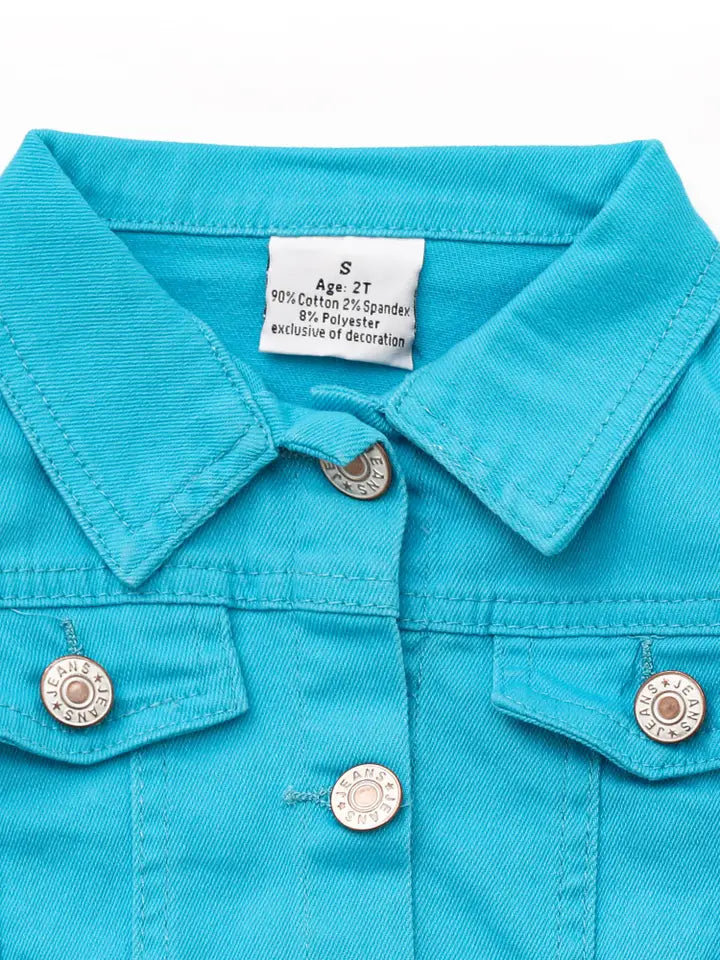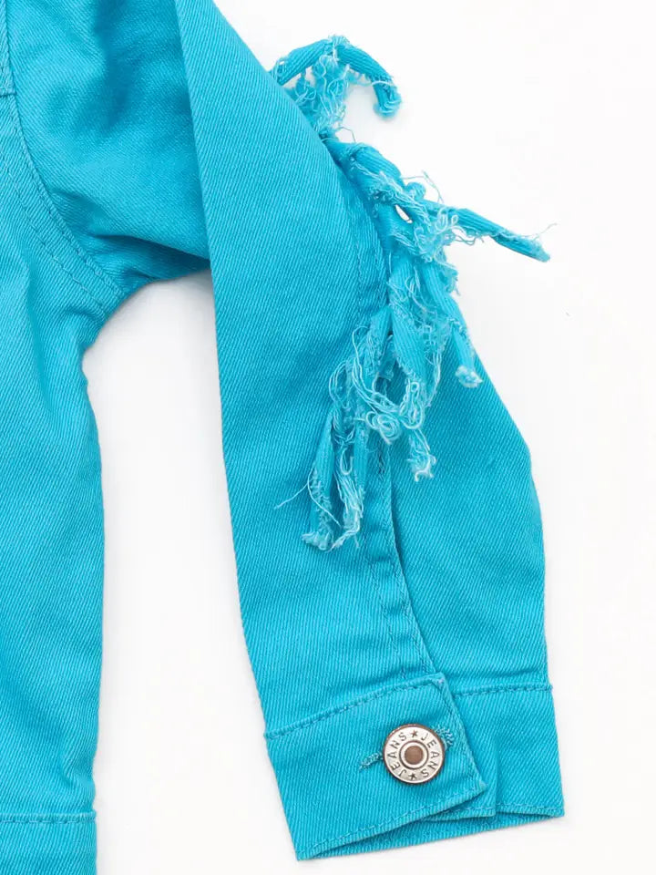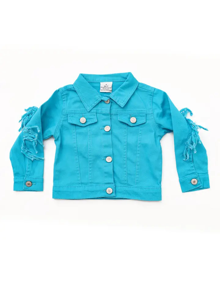 Kids Blue Fringe Denim Jackets Constructed with durable denim fabric and trendy fringe details, these Kids Blue Fringe Denim Jackets are the perfect combination of fashion and functionality. With our quick delivery, you can have your little one looking stylish in no time. Order now and elevate their wardrobe with this must-have outerwear piece.
