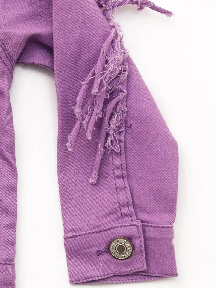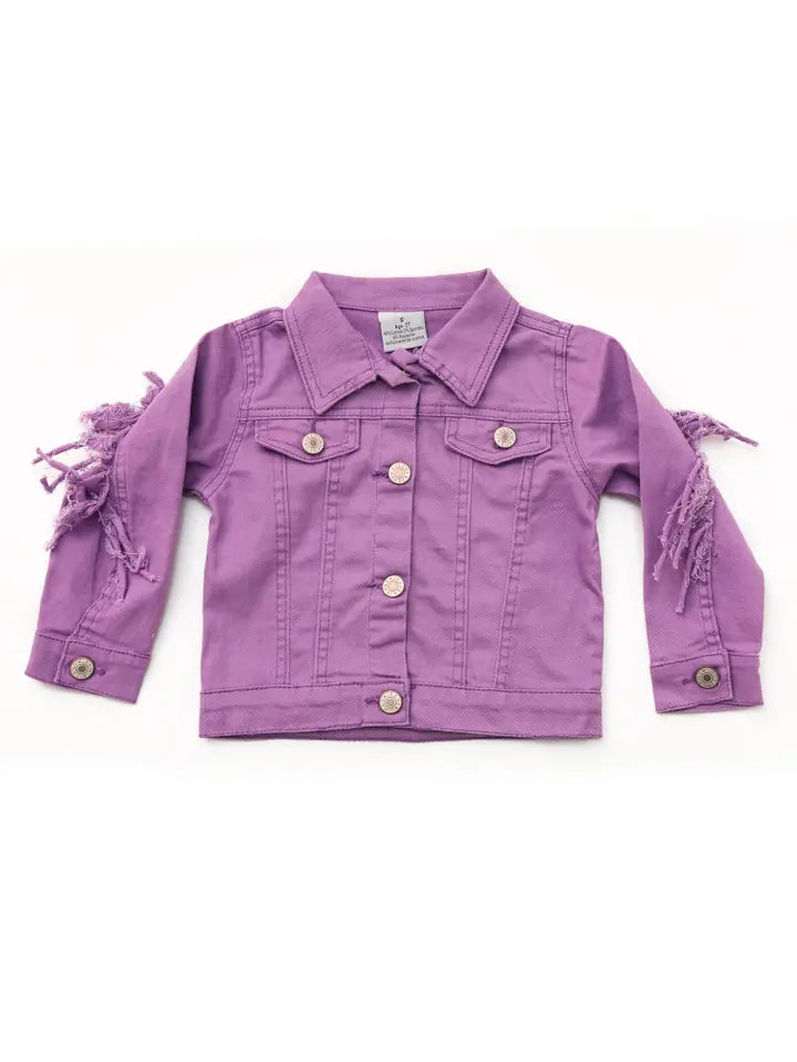 Kids Blue Fringe Denim Jackets Constructed with durable denim fabric and trendy fringe details, these Kids Blue Fringe Denim Jackets are the perfect combination of fashion and functionality. With our quick delivery, you can have your little one looking stylish in no time. Order now and elevate their wardrobe with this must-have outerwear piece.