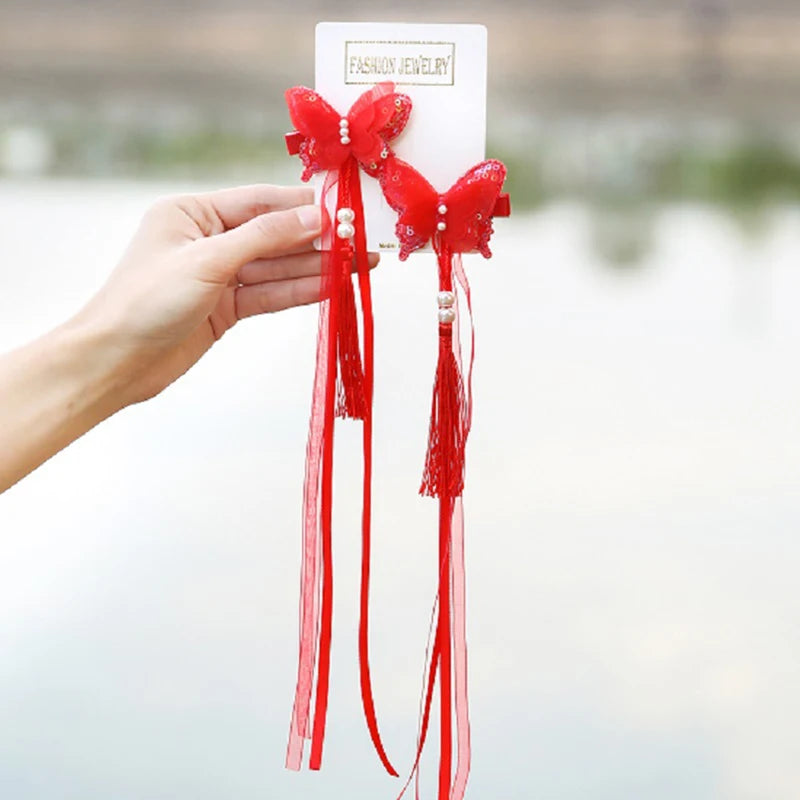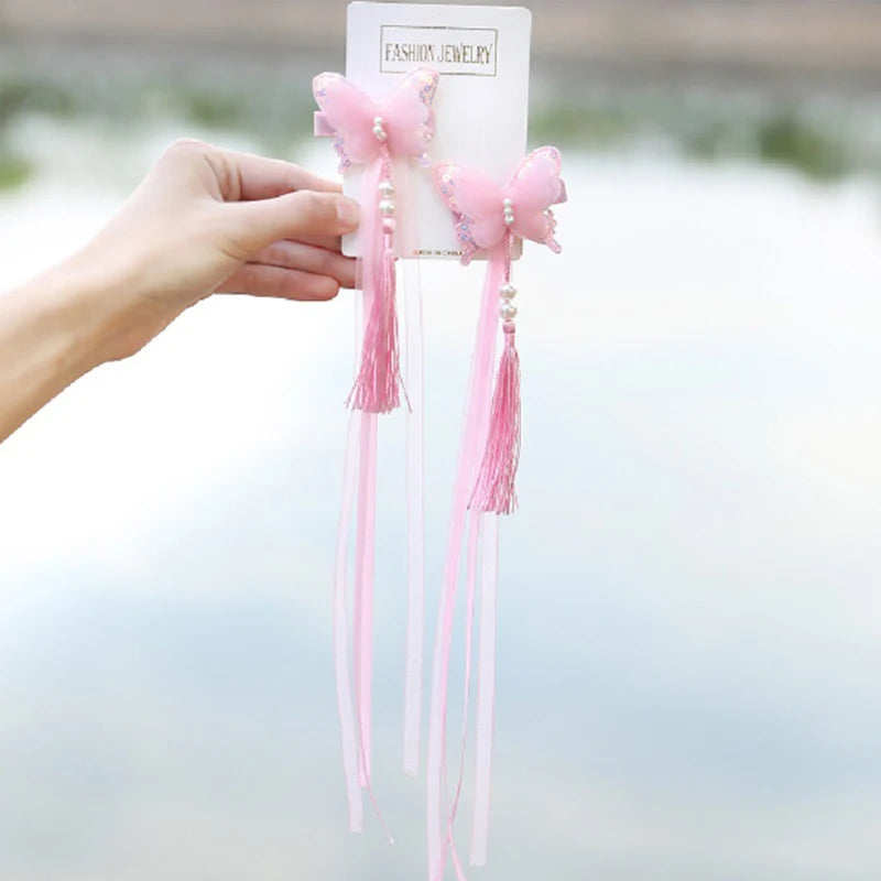 Little Girls Butterfly Hair Clip, White Beads Decoration Long Tassels Headwear, Easy Removal Lovely Hair Ornaments