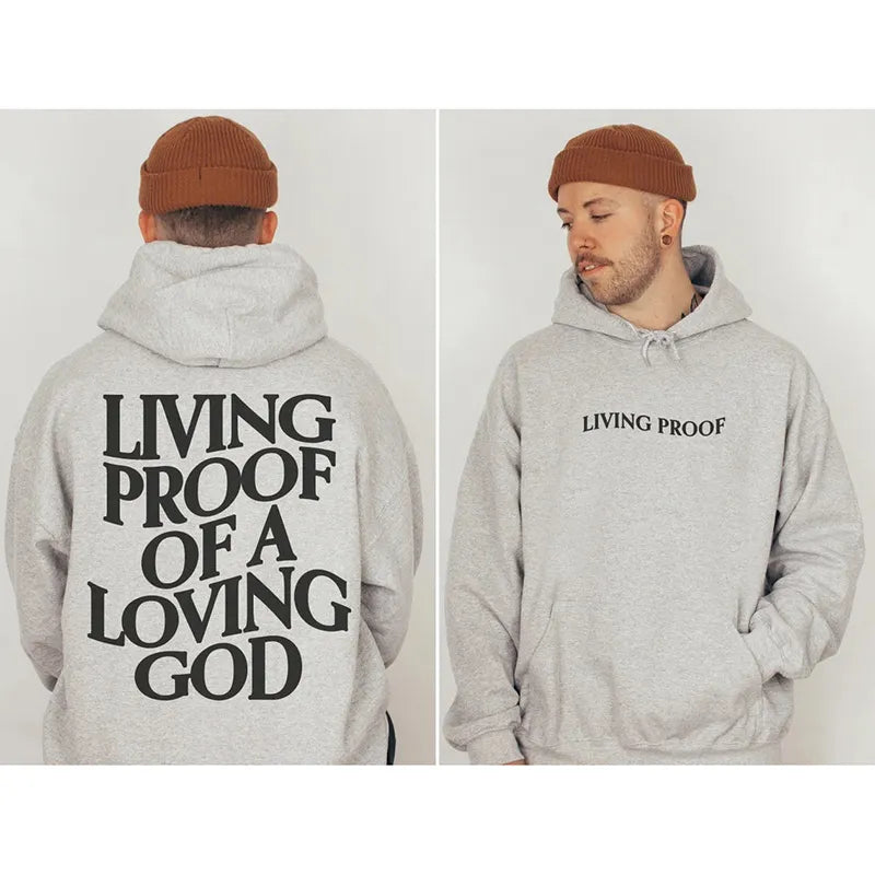 Wrap yourself in warmth and faith with our Mens Living Proof of a Loving God Hoodie. Made with the finest materials and featuring a bold and timeless design of Christian symbolism, this hoodie is a powerful reminder of the love and presence of God in our lives. Stay cozy and connected to your faith with this must-have hoodie.