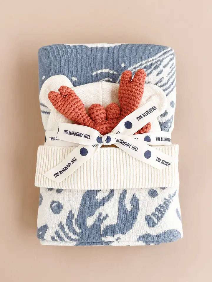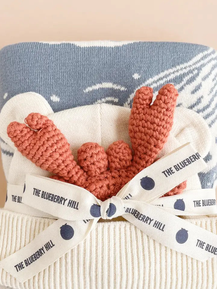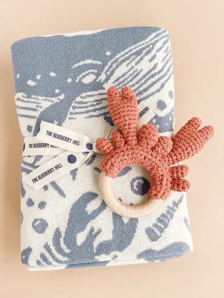 Nautical Baby Gift Set, Crab | Cotton Blanket, Teether, Hat