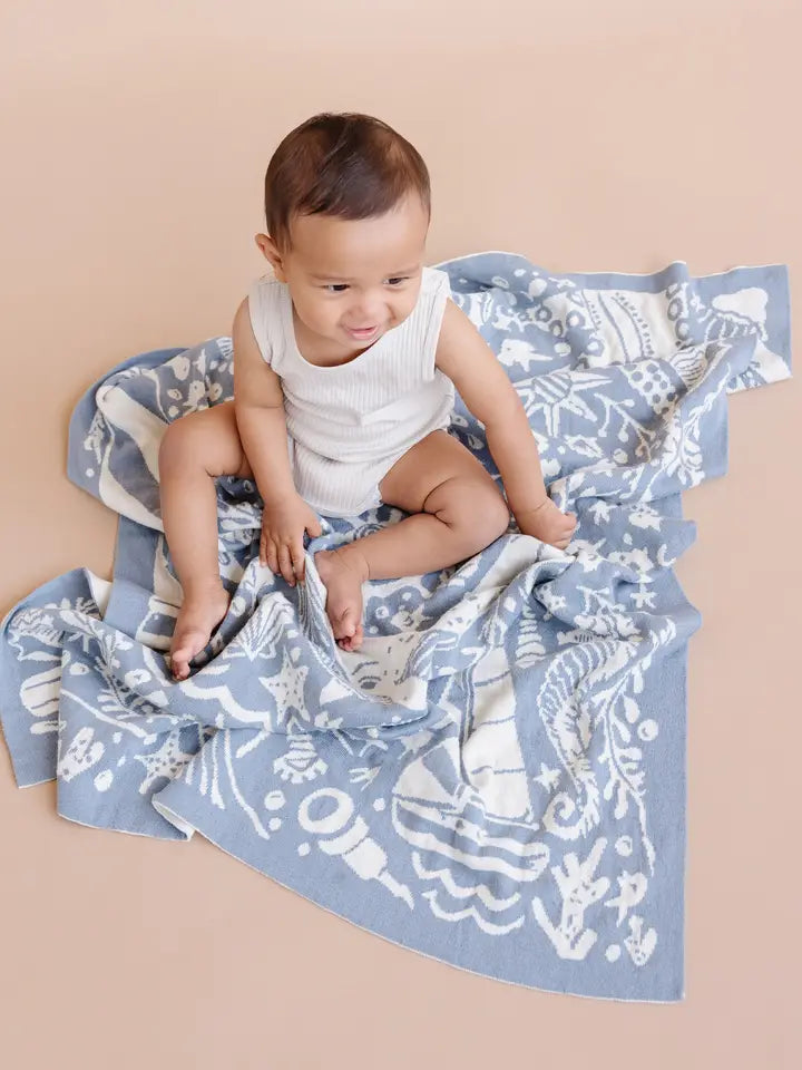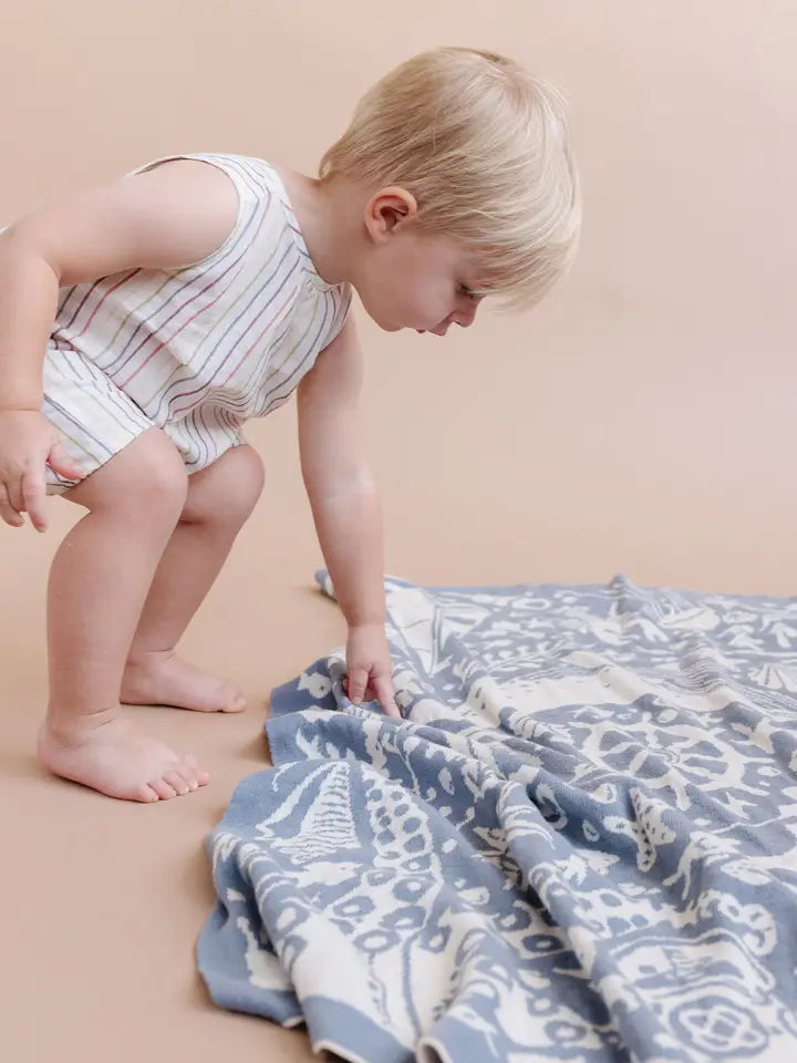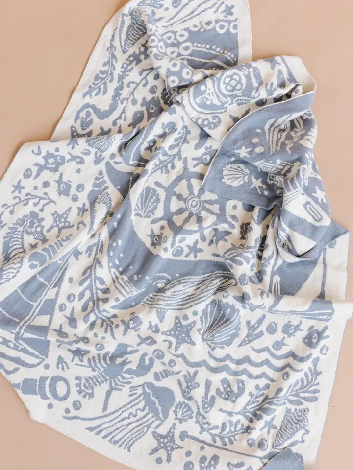 100% GOTS organic cotton, reversible nautical blanket