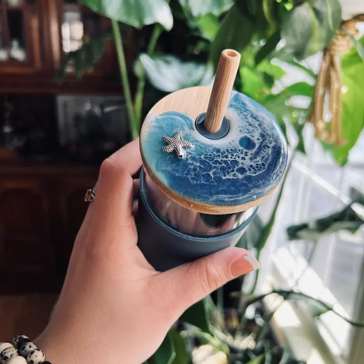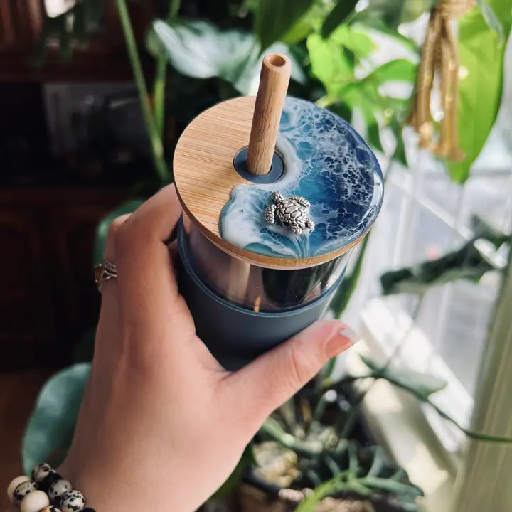 Enjoy your favorite beverage with these ocean inspired tumblers. These cups can hold hot or cold drinks and the bottoms are dishwasher safe!