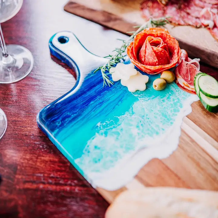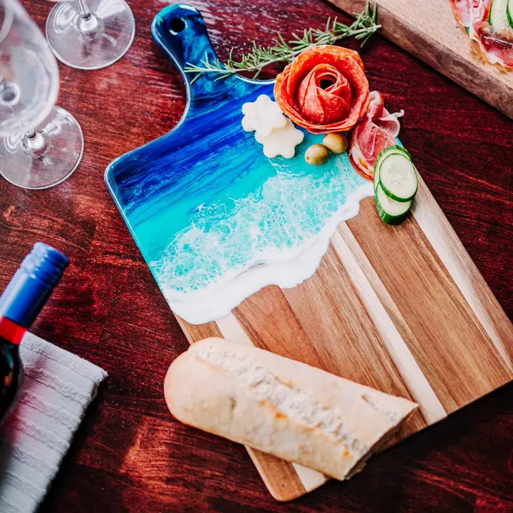 Ocean Resin and Acacia Wood Charcuterie Board, Cutting Board