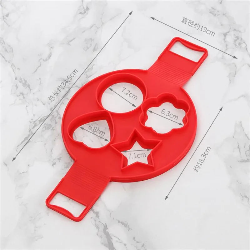 Flippin' good breakfasts made easy! This non-stick silicone cooking tool forms perfect pancakes, eggs, hashbrowns, and biscuits. Say goodbye to messy pans and hello to a fun and fuss-free cooking experience! (No more flipping out!)"