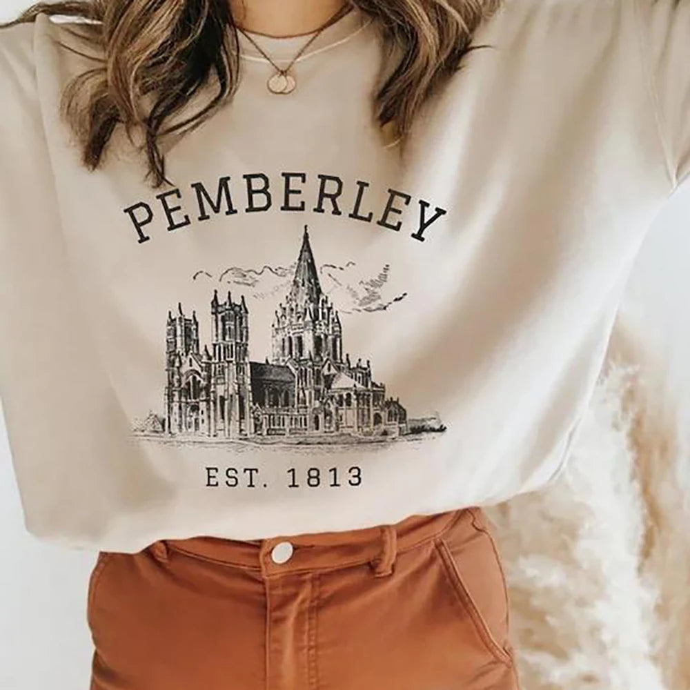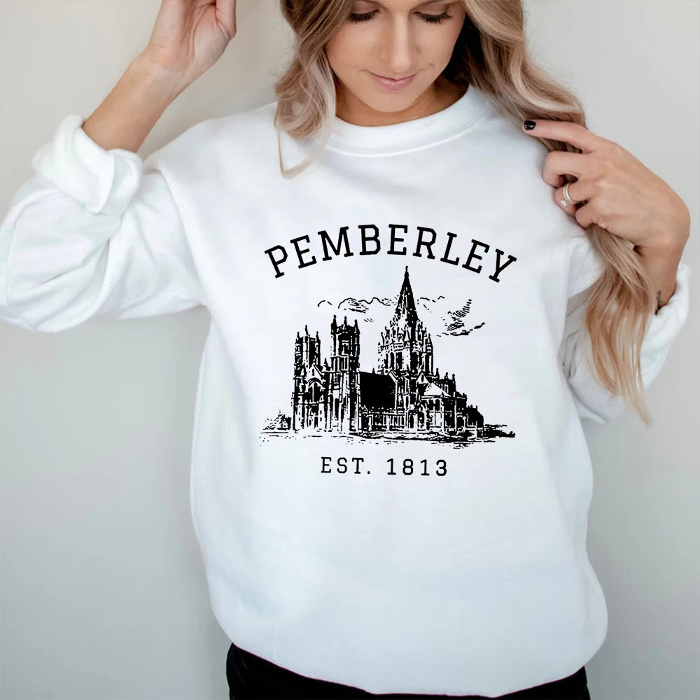 Unleash your inner romantic with the Pemberley 1813 Jane Austen sweatshirt. Inspired by the beloved classic, Pride and Prejudice, this sweatshirt features a tasteful design that captures the essence of Jane Austen's timeless novel. Keep warm and stylish while indulging in your love for literature.