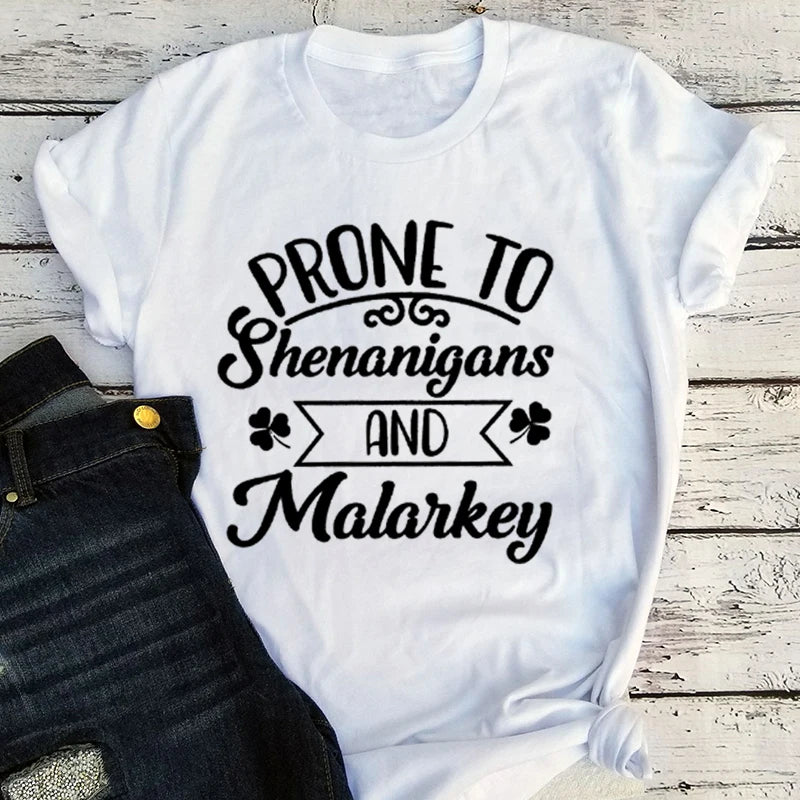 This St. Patrick's Day women's tee is perfect for those who are prone to shenanigans and malarkey. Made with high-quality materials, it's comfortable and stylish, making you the life of the party. Share your love for St. Patrick's Day with this fun and festive tee.