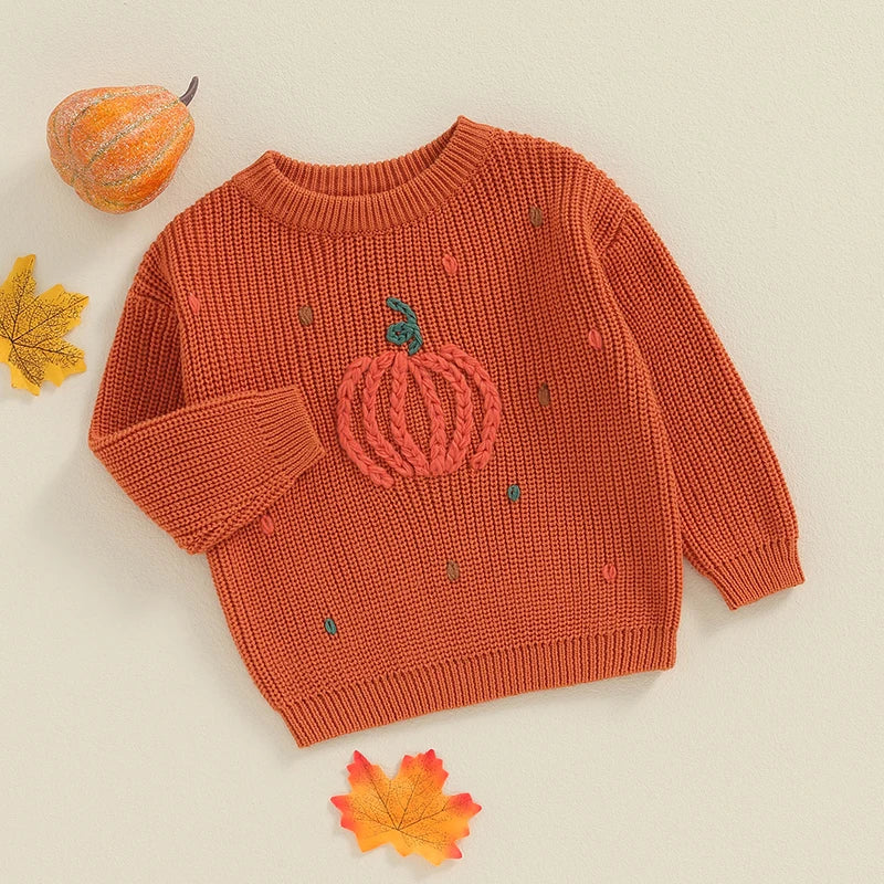 Baby Pumpkin Autumn Fall Pullover Knit Sweater for Boys and Girls