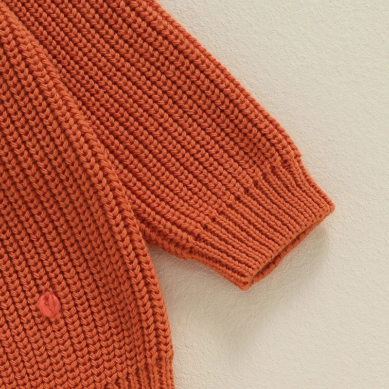 Celebrate the season with our cozy baby pumpkin sweater! Made from soft knit material, this pullover will keep your little one warm and stylish. The adorable embroidered pumpkin adds a festive touch to any autumn outfit. Perfect for boys and girls, this sweater is a must-have for fall!