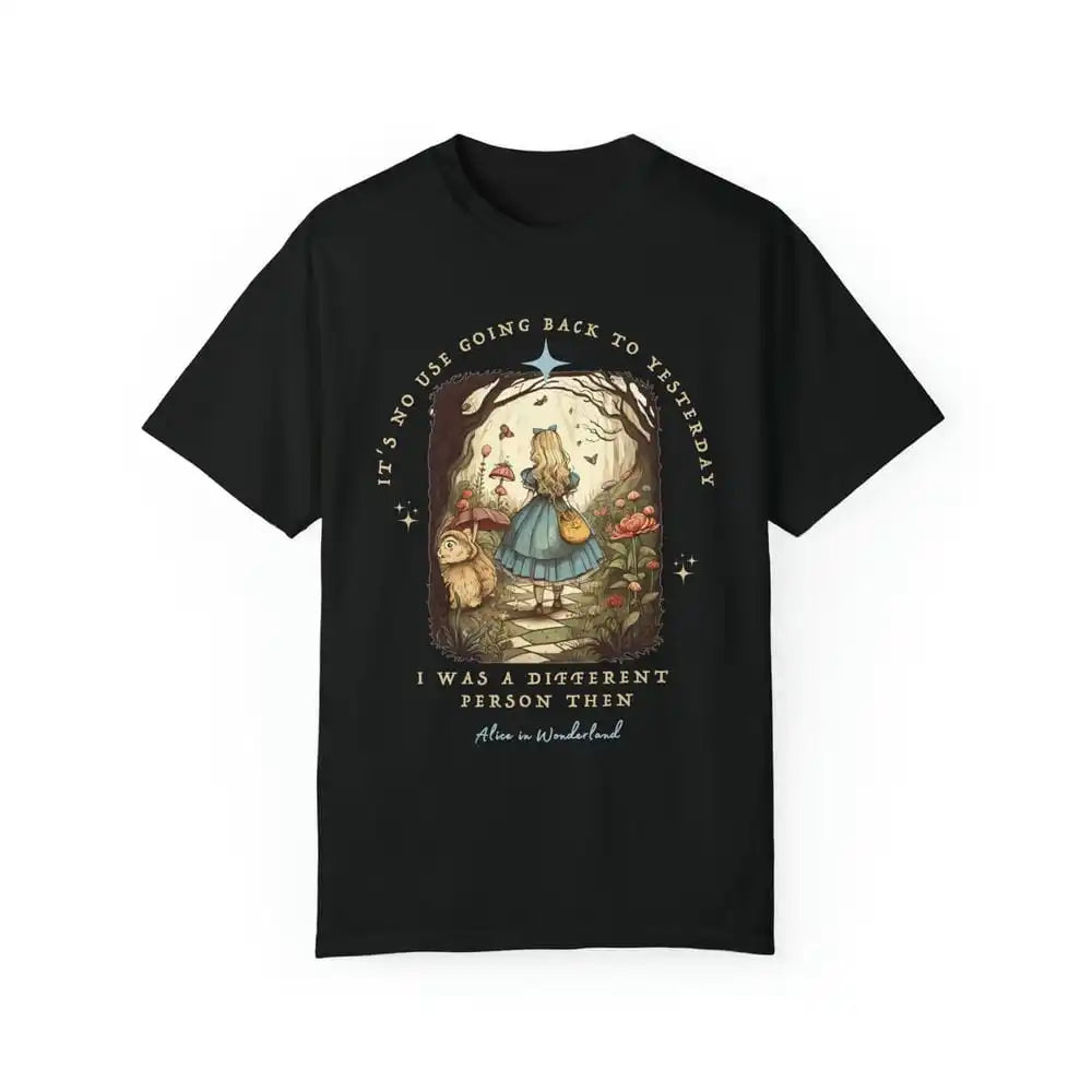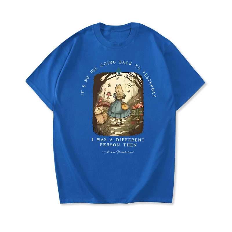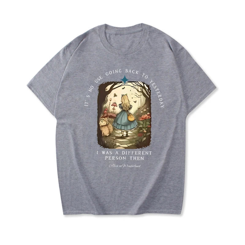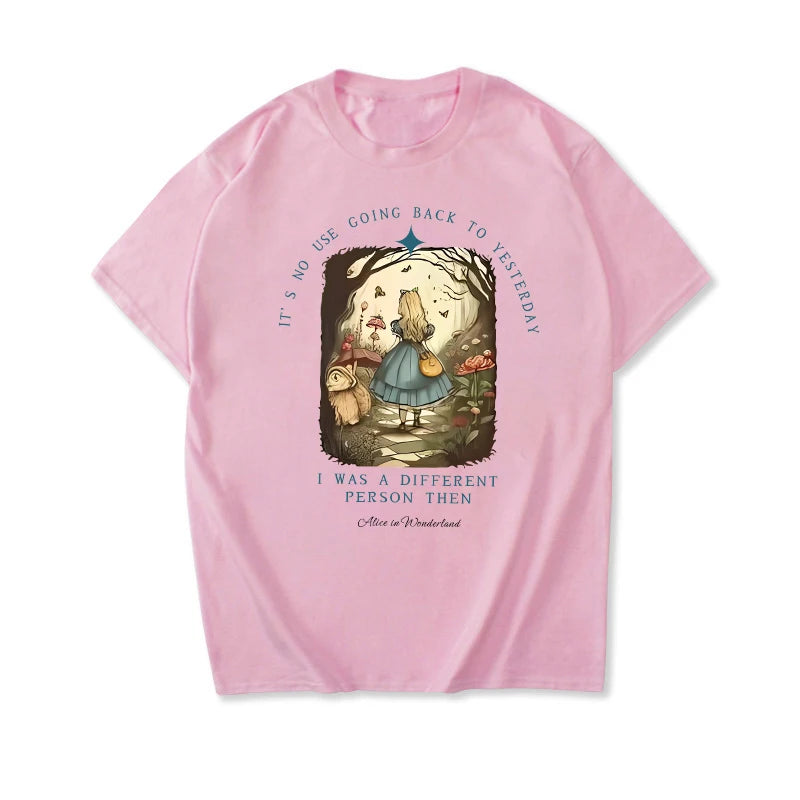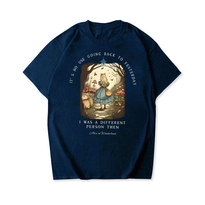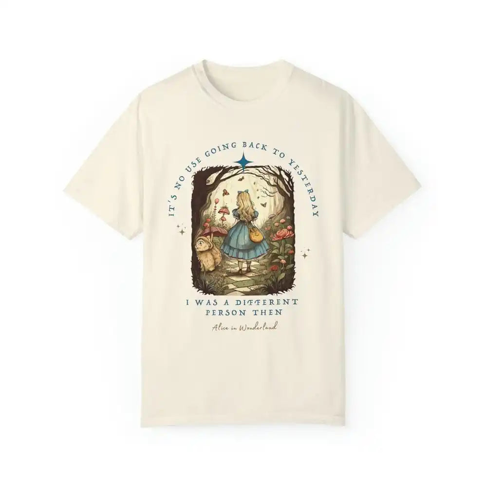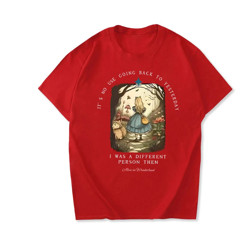 Channel your inner bookworm with this vintage-inspired Alice in Wonderland shirt. Made from soft, high-quality fabric, this unisex top features a classic Junior Tee design, perfect for any dark academia or bookish look. Embrace your literary side and add this unique piece to your streetwear collection.