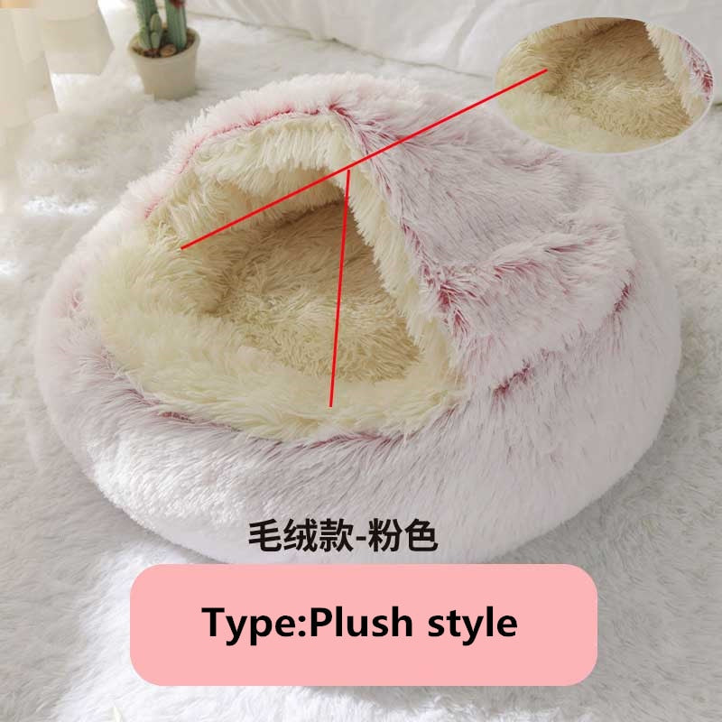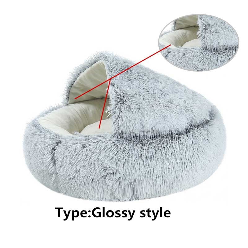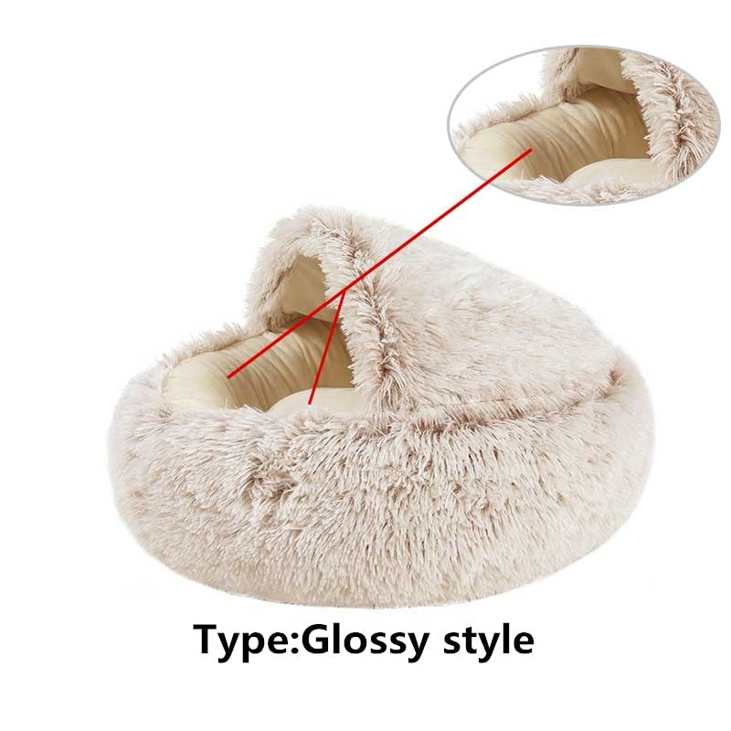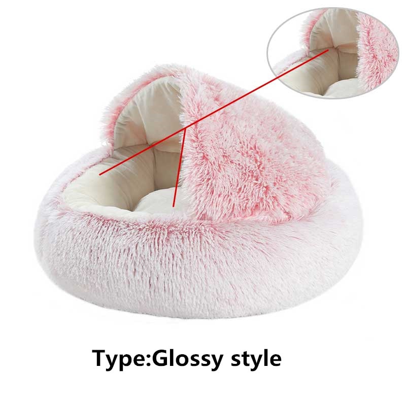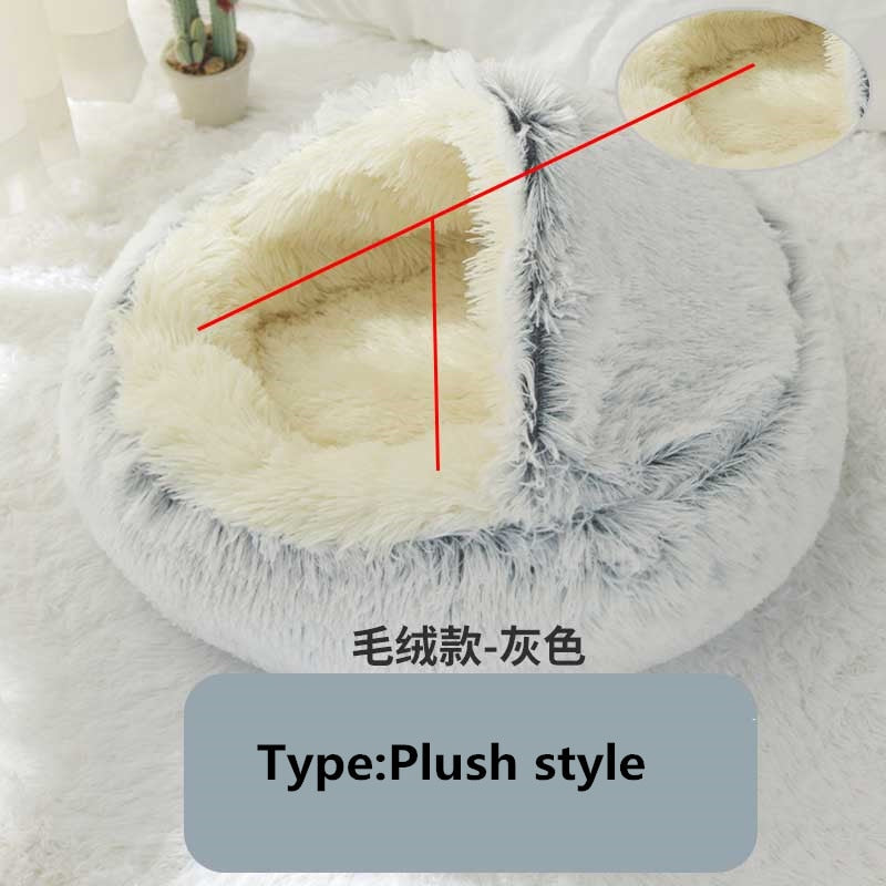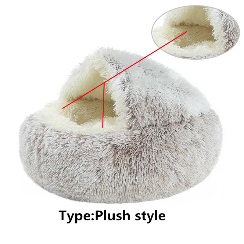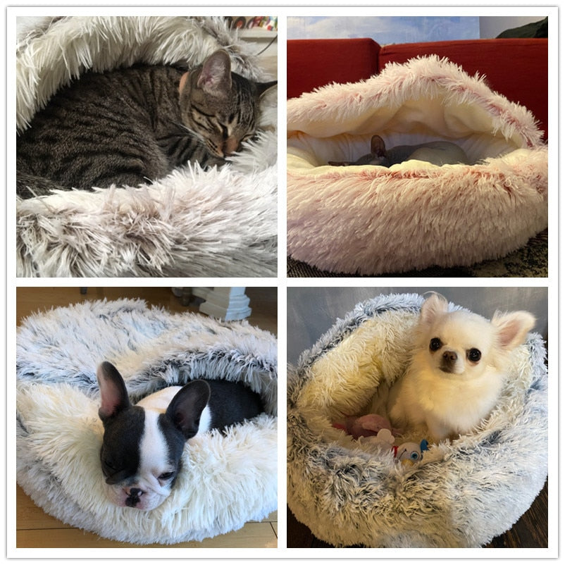 Keep your fur friend warm and cozy in these partially covered pet beds. Round Plush Warm Soft Bed for Cats and Small Dogs- Various Colors and Sizes Available