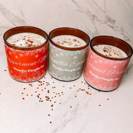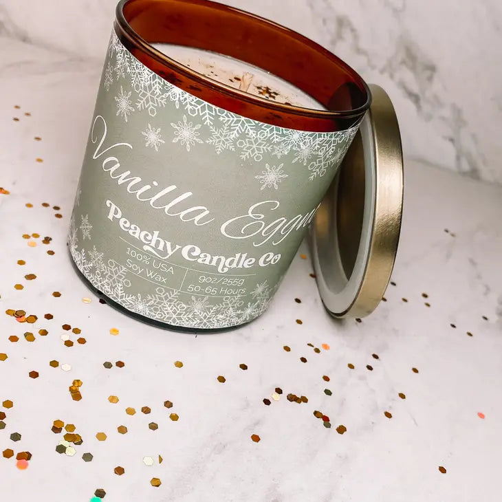 *Vanilla Eggnog-For many, the holiday season isn’t complete without a splash of homemade spiked eggnog, and our Vanilla Eggnog candle doesn’t hold back on the nog. Heavy on amaretto and rum, this creamy scent has an added dash of vanilla, butter, and sugar for a rich and delicious scent. Note Profile- Top: Amaretto, Middle: Rum & Vanilla, Base: Butter, Sugar, Cream, & Spice