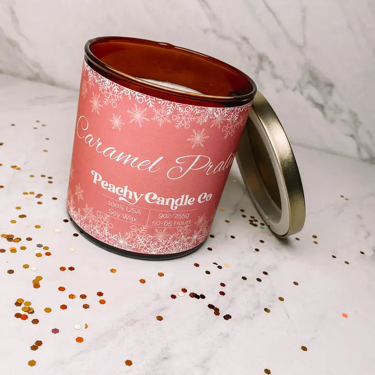 *Caramel Praline is a decadent and mouthwatering dessert-scented candle. Notes of sea salt, caramelized sugar, and rich brown sugar envelope the nutty pecan and hazelnut. Vanilla, tonka bean, and caramel enhance the buttery goodness of this delicious treat. ** Label is PINK Note Profile- Top: Caramelized Sugar & Sea Salt, Middle: Butter, Praline, Pecan, Brown Sugar & Hazelnut, Base: Caramel, Vanilla & Tonka Bean