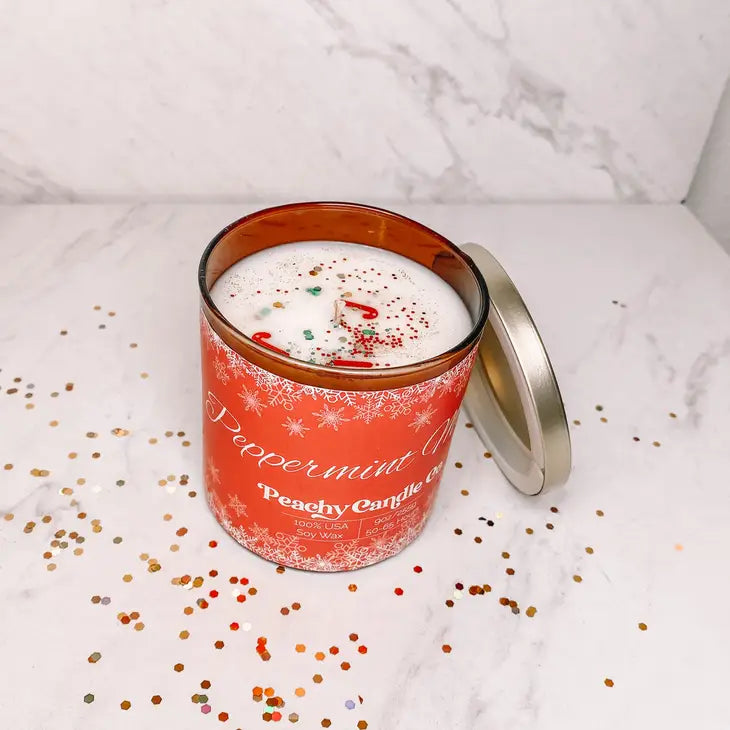 *Peppermint Mocha-It's the flavor of wintertime in a beautiful, hand-poured soy candle. The rich cocoa and vanilla notes fill your home while the peppermint adds an extra burst of festive spirit. Bring on the holidays - we're ready! Fragrance Notes- Top: Coconut Milk Middle: Peppermint Base: Chocolate, Vanilla